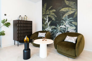 Los interiores son espectaculares: dos salones con diseño de planta abierta, una cocina de diseño totalmente equipada, grandes ventanales de suelo a techo que inundan los espacios de luz natural, y una decoración exquisita que combina lujo, modernidad y calidez.