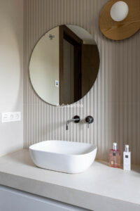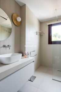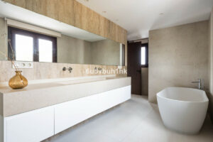 En el corazón de la villa se encuentra una cocina de Porcelanosa, cuyo diseño de planta abierta fluye de manera natural hacia un comedor y un rincón de desayuno. Funcional y acogedor al mismo tiempo, ha sido concebido como un espacio para la creatividad culinaria y las reuniones sociales. Entre sus características técnicas destacan la climatización integral y la calefacción por suelo radiante en seis de los ocho baños, con excepciones cuidadosamente previstas en la ducha exterior de la cabaña, el aseo de cortesía del vestíbulo y el nuevo baño de la planta baja.