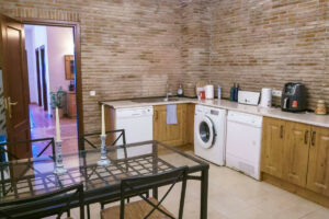 El nivel inferior ofrece una versatilidad notable. Actualmente, dispone de dos amplios dormitorios dobles, un dormitorio más pequeño, dos baños con ducha y una sala de estar de concepto abierto con acceso a una terraza cubierta y a la zona de la piscina. Además, una cocina secundaria, añadida en lo que anteriormente era un trastero, convierte este nivel en un apartamento independiente de tres dormitorios, ideal para huéspedes o familiares. La villa está equipada con calefacción por gasoil y chimeneas funcionales, garantizando comodidad durante todo el año.