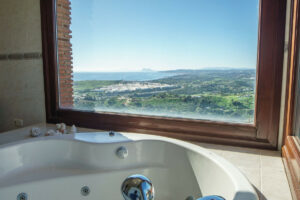 La propiedad da la bienvenida a través de un encantador patio con una fuente o una entrada formal con camino privado. Hay amplio espacio de aparcamiento para tres o más coches, además de un cobertizo. La villa se distribuye en tres plantas, cada una con varias terrazas diseñadas para maximizar las vistas espectaculares.