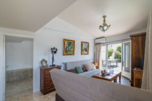 Finalmente, la villa incluye un alojamiento aparte para huéspedes o personal, con su propia sala de estar, dormitorio y baño—ideal para mayor privacidad y comodidad.