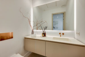 Todo el piso está diseñado para la privacidad pura. La suite principal cuenta con una amplia terraza con impresionantes vistas al mar, un vestidor personalizado y un baño de mármol con bañera independiente. Un segundo dormitorio en suite y una oficina / sala de televisión flexible potencian el espacio.
