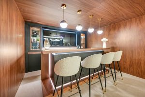 Un centro de bienestar y entretenimiento de lujo: sala de cine, bodega con cristal, gimnasio completo, sauna, sala de vapor y humeda fría. Una sala de juegos con bar de diseño, una acogedora segunda sala de estar, y dos dormitorios en suite de nivel jardín crean el retiro perfecto. Otras características incluyen una sala de pánico, almacenamiento, sala de máquinas y calefacción por suelo radiante.