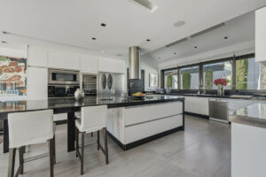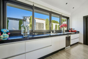 La villa destaca por sus elegantes suelos de madera, calefacción por suelo radiante, aire acondicionado (frío/calor) y una cocina de diseño moderno equipada con materiales de alta calidad.
