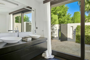 Esta extraordinaria villa ultramoderna se encuentra a solo 2 minutos a pie del mar, un auténtico oasis de paz rodeado de prestigiosos campos de golf y colegios.