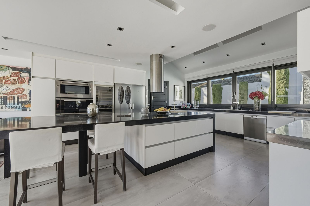 Esta extraordinaria villa ultramoderna se encuentra a solo 2 minutos a pie del mar, un auténtico oasis de paz rodeado de prestigiosos campos de golf y colegios.