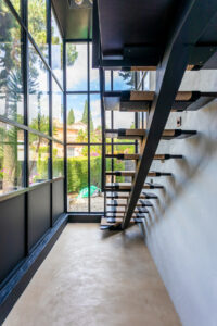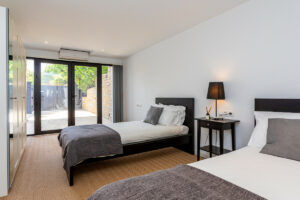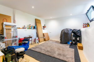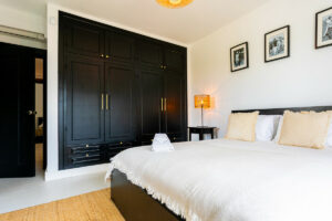 Una llamativa escalera con fachada de cristal le lleva a la planta inferior, donde encontrará otro amplio dormitorio doble, un baño moderno y una sala adicional versátil, ideal como dormitorio o despacho.