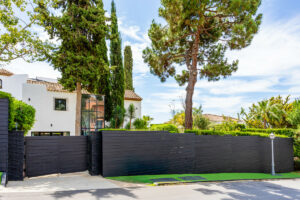 Situada en la exclusiva urbanización Hacienda Las Chapas, en el este de Marbella, la villa goza de una posición privilegiada a poca distancia a pie de un supermercado local y a solo 10 minutos en coche del centro de Marbella. El pintoresco puerto de Cabopino, con sus boutiques, restaurantes de alta calidad y playas doradas, se encuentra a solo cinco minutos.