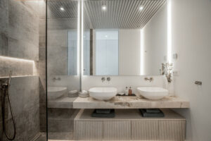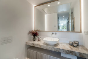 La suite principal es realmente excepcional. Posición para capturar impresionantes vistas al mar, cuenta con un walk-in closet diseñado a medida y un lujoso baño en suite con accesorios de alta gama y una sensación sereno, spa-como—creando un retiro tranquilo dentro de la casa.