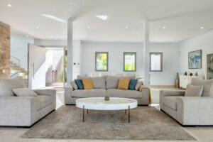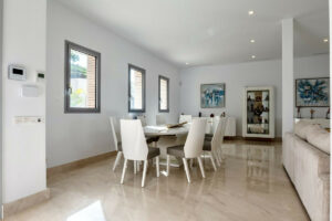 Diseñada y construida con los más altos estándares, esta elegante vivienda cuenta con 5 amplias habitaciones y 6 baños modernos, distribuidos en espacios generosos y funcionales. El interior es luminoso, fresco y contemporáneo, con grandes ventanales que inundan cada estancia de luz natural. La villa incluye dos elegantes salones, una cocina moderna totalmente equipada y un despacho, perfecto para quienes trabajan desde casa.