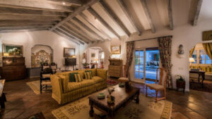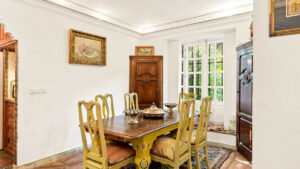 Un acogedor camino de entrada conduce a la entrada principal, revelando una distribución en una sola planta que combina comodidad y practicidad. La residencia ofrece seis dormitorios —cinco de ellos con acceso directo al patio— y una selección de elegantes salones y comedores que reflejan su carácter tradicional. La cocina rústica y los acabados originales conservan el espíritu cálido y auténtico de la casa, a la vez que ofrecen una interesante oportunidad para la modernización.