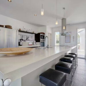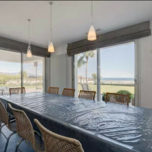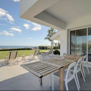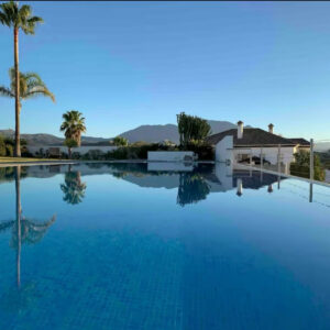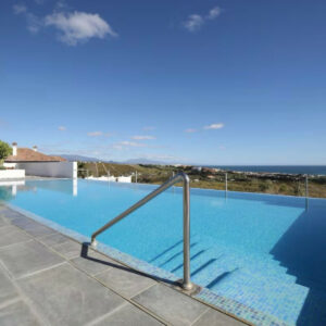 Exclusiva villa moderna ubicada en una enorme propiedad privada y tranquila con impresionantes vistas al mar y a la montaña rodeada de jardines tropicales con palmeras y flores piscina privada infinita de 16 x 6 metros con terrazas al sol y a la sombra para relajarse tomar el sol o disfrutar de comidas al aire libre más de 300 días de sol al año terrazas delante y detrás de la casa para aprovechar el sol durante todo el día interior con 2 habitaciones dobles con baño en planta baja y 2 habitaciones triples en la planta alta con baño adicional apartamento privado e independiente justo debajo de la piscina a solo 50 metros de la villa que incluye 2 habitaciones dobles baño completo salón comedor cocina aire acondicionado terraza privada y sala de juegos con ping pong y dardos capacidad total para 16 personas 14 en camas y 2 en sofá cama en el salón del apartamento para grupos de hasta 10 personas el apartamento se habilita como sala de juegos sin acceso a los dormitorios y a partir de 11 personas se habilita completo incluyendo los dormitorios privacidad absoluta ya que el apartamento nunca se alquila a terceros acceso exclusivo a toda la propiedad piscina jardines y zona exterior equipada con hamacas tumbonas sombrillas barbacoa terraza chill out aseo exterior wifi Apple TV Netflix sistema de sonido SONOS Play 5 aparcamiento privado para hasta 6 coches playa restaurantes y bares a solo 2 kilómetros ideal para familias con niños ya que toda la finca está completamente vallada ofreciendo seguridad tranquilidad y espacio para disfrutar al máximo
