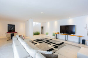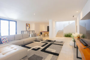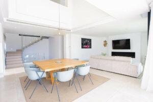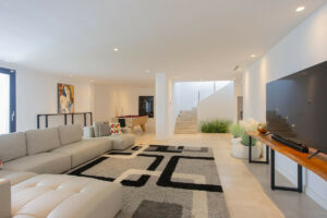 Distribuida en 3 plantas, la villa cuenta con 6 dormitorios, 4 baños y medio, una sala de estar de planta abierta, cocina y comedor con acceso a una amplia terraza con piscina, además de un amplio sótano con zona de TV, lavadero, mesa de billar y garaje.