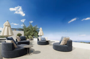 El corazón de esta grandiosa propiedad radica en sus espacios interiores, que se abren en un diseño de planta libre que fomenta una fluidez natural entre las estancias. Las grandes ventanas permiten que la luz natural inunde los espacios, creando una atmósfera de amplitud y calidez. Las terrazas cubiertas ofrecen un punto de vista perfecto para admirar los paisajes circundantes, mientras que los espacios exteriores no son menos impresionantes. Un generoso solárium invita a pasar relajadas tardes, mientras que la gran zona de barbacoa promete ser el escenario de muchos encuentros memorables con amigos y familiares. La terraza junto a la piscina es, por sí sola, un santuario, ofreciendo un lugar privado para tomar el sol o simplemente disfrutar del paisaje tranquilo.