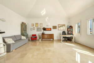 La planta superior dispone de un torreón acondicionado como apartamento independiente, con dormitorio, zona de estudio, baño, cocina y su propia terraza solárium privada, perfecta para disfrutar del sol y de las vistas con total privacidad.