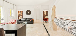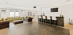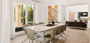 El alojamiento de la planta baja incluye otros dos dormitorios dobles, una luminosa sala de juegos con bar profesional, un segundo aseo para invitados y una cocina totalmente equipada, un lavadero de buen tamaño y un enorme garaje integral. Desde la sala de juegos, las puertas se abren a un patio de ping-pong con escalones que conducen a la piscina. Una ventaja adicional si uno necesita más alojamiento es que tiene la posibilidad de ampliarlo en 120m2.