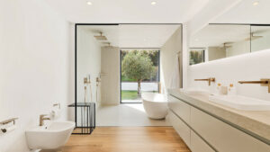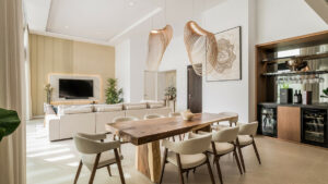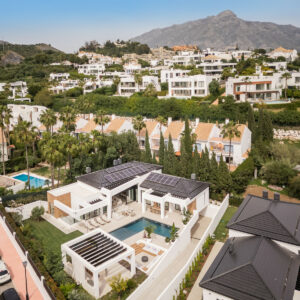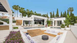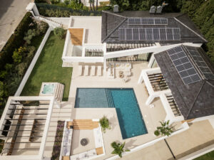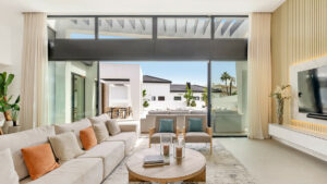 La villa está construida principalmente en una sola planta más un nivel inferior, algo poco habitual en el mercado. Tiene un aire fresco y moderno en todas sus estancias. Decorada en una paleta de colores suaves y neutros, resulta relajante, luminosa y acogedora.