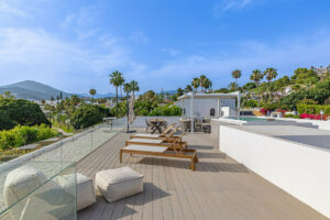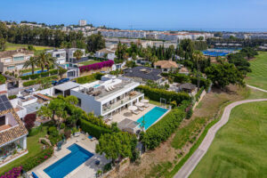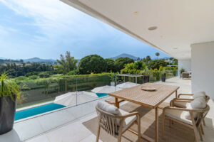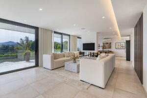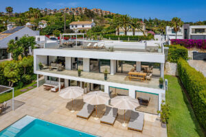 Una villa de lujo en primera línea de golf que combina diseño contemporáneo con el máximo confort. Ubicada en una de las zonas más exclusivas de Marbella, esta propiedad ofrece vistas espectaculares al campo de golf y las montañas, creando un entorno perfecto para disfrutar del estilo de vida mediterráneo.