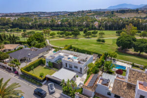 A solo unos pasos de campos de golf de renombre, restaurantes exclusivos y el animado puerto de Puerto Banús. Disfrute de un acceso exclusivo y directo al prestigioso campo de golf Los Naranjos desde su villa.