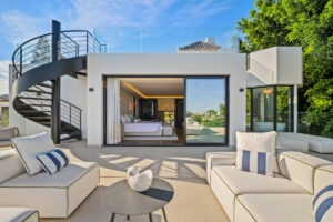 Amplios ventanales le dirigen sin esfuerzo hacia las terrazas y la piscina infinita rodeada de árboles tropicales y jardines maduros. La Villa se completa con 6 distintivos dormitorios; la elegante suite principal ocupa toda la primera planta con amplios vestidores, un elegante cuarto de baño de mármol con bañera redonda, una sala de despacho y acceso a la espaciosa terraza privada que ofrece hermosas vistas al mar. Disfrute de una de las propiedades más distintivas de Marbella en el mercado, desde su terraza en la azotea, spa completo y gimnasio privado, piscina cubierta, sala de cine y su propia zona de putting green. La villa incluye un ascensor, un garaje para 2 coches y una cochera para 2 coches más.