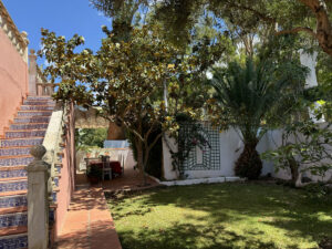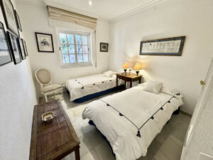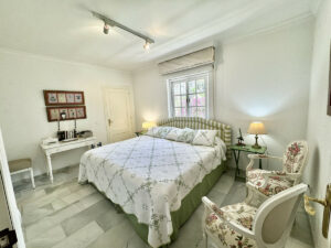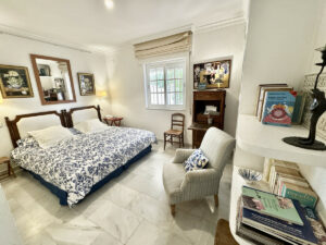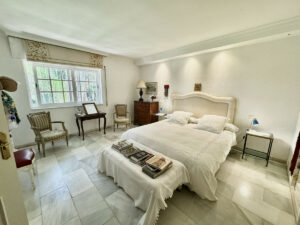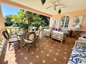 Bonita villa familiar con mucho encanto situada en segunda línea de playa en la urbanización Linda Vista Baja, San Pedro de Alcántara. Construida en una sola planta, sobre una hermosa parcela llana, tiene un jardín muy maduro, con plantas tropicales y árboles frutales. Está a pocos minutos a pie de todo tipo de servicios como restaurantes, colegios internacionales y tiendas Orientación sur, con bonitas vistas al mar y a las montañas desde la azotea. Esta propiedad por su ubicación, es ideal como proyecto de renovación. Consta de: un hermoso porche cubierto con mucha privacidad y vistas al bonito jardín. Amplio salón comedor con chimenea, hermosa cocina totalmente equipada con zona de desayuno y lavadero. En total tiene 6 dormitorios dobles con roperos empotrados + 1 cuarto de servicio y 3 cuartos de baño. El dormitorio principal es muy espacioso con su baño en-suite y oficina. En el lado Este tiene un patio muy acogedor, ideal como comedor de verano cubierto con toldos. Garaje cerrado y aparcamiento exterior para varios coches. Aire acondicionado. Paneles solares.