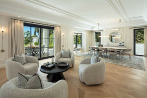 Con una ubicación envidiable, enclavada a los pies de la montaña de La Concha y con espléndidas vistas al resplandeciente Mediterráneo, Villa Marusha es una residencia verdaderamente única con capacidad para 12 huéspedes. Al entrar, quedará cautivado por el encanto costero y el ambiente relajado de la villa, que irradia una sensación de calma con sus tonos neutros y materiales naturales. El diseño diáfano conecta las estancias a la perfección, permitiendo una fluidez entre la vida interior y exterior. Decorada con elegantes suelos de madera, la villa irradia belleza y sofisticación, realzando su atractivo único. Lo más destacado de la propiedad reside en su amplio espacio exterior, que ofrece amplias oportunidades para tomar el sol o relajarse a la sombra. Las amplias zonas de estar al aire libre satisfarán todos sus deseos. Y la impresionante piscina es el lugar perfecto para relajarse mientras contempla las impresionantes vistas al mar. Al caer la noche, la elegante y moderna cocina le invita a preparar un suntuoso festín, que podrá disfrutar al aire libre en la terraza cubierta mientras se deleita con los resplandecientes colores del atardecer. Además de su impresionante belleza, Villa Marusha ha sido cuidadosamente equipada con lujosas comodidades, como piscina cubierta, sauna y un gimnasio totalmente equipado, lo que garantiza una estancia verdaderamente placentera. Perfecta para familias o grupos de amigos, esta espléndida villa ofrece seis habitaciones dobles, cada una con baño privado, que garantizan privacidad y comodidad para todos los huéspedes.