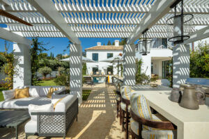 Diseñada por el aclamado arquitecto responsable de Finca Cortesín, el exterior en tonos nude de la villa irradia serenidad y paz, ofreciendo un ambiente relajante a sus residentes. Los jardines son un verdadero oasis, perfecto para celebrar reuniones y disfrutar al máximo de los 320 días de sol de Marbella. Coloridos muros florales enmarcan la propiedad, aportando vitalidad y fusionando a la perfección el entorno natural con la finca.