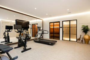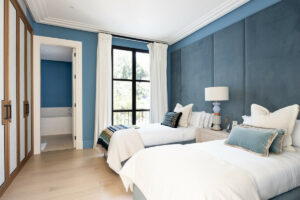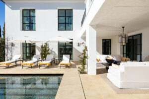 Dentro, la elegancia atemporal define cada espacio. Los muebles hechos a medida y la decoración refinada crean un ambiente sofisticado, mientras que las terrazas superiores proporcionan una vida interior sin esfuerzo. Las ventanas expansivas inundan los interiores con luz natural, mejorando el sentido de apertura del hogar.