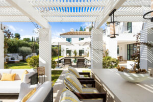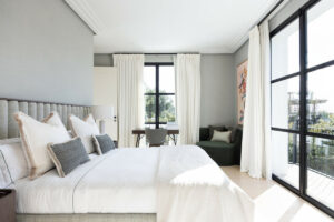 Creado por el aclamado arquitecto detrás de Finca Cortesín, el exterior desnudo de la villa irradia serenidad y paz, ofreciendo un ambiente tranquilo para sus residentes. Los jardines son un verdadero oasis, perfecto para acoger reuniones y aprovechar al máximo los 320 días de sol de Marbella. Paredes florales coloridas enmarcan la propiedad, añadiendo vibración y mezclando perfectamente el entorno natural con la finca.