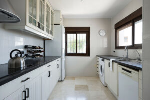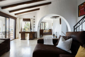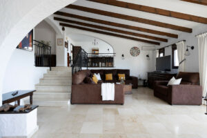 La villa recibe con una arquitectura andaluza clásica y espacios abiertos y cálidos, diseñados tanto para el relax como para el entretenimiento elegante. En su interior destacan los suelos de mármol marfil que recorren toda la planta principal, aportando un toque de lujo y luminosidad.