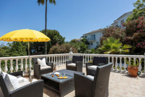 En el exterior, la villa ofrece cuidados jardines mediterráneos, una piscina privada y varias terrazas amplias, ideales para comer al aire libre, tomar el sol o disfrutar de veladas bajo las estrellas. Situada en una calle residencial tranquila, se encuentra a pocos pasos de todos los servicios clave.