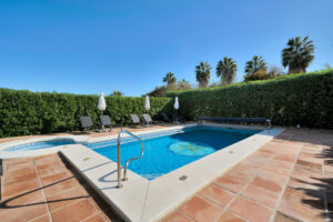 Piscina privada con zona de solárium para disfrutar del clima soleado de la Costa del Sol.