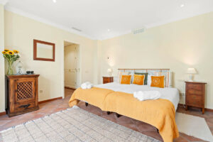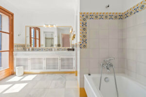 Subiendo las escaleras del piso superior encontrarás la zona de dormitorio. Dos dormitorios independientes con baño propio y extraordinarias vistas al mar. En el nivel semisótano hay tres dormitorios independientes con sus propios baños en suite con vistas al mar y al jardín.