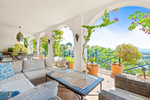 Esta magnífica villa está situada en una parcela orientada al sur dentro de una comunidad cerrada de El Madroñal y su acceso a través de la primera puerta de la comunidad. La urbanización La Heredia con todos sus restaurantes y tiendas se encuentra a poca distancia de la villa. El atractivo de El Madroñal se encuentra en su ubicación, que ofrece vida en el campo, tranquilidad y paz, pero muy cerca del vibrante estilo de vida de la costa de Marbella. La villa, situada en una parcela elevada, ofrece impresionantes vistas tanto del mar Mediterráneo como de vistas panorámicas, un impresionante telón de fondo para la vida cotidiana.