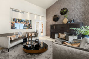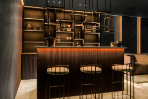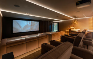 La planta baja ofrece una extraordinaria sala de cine de lujo, un elegante bar perfecto para socializar, un gimnasio Eleiko totalmente equipado, una rejuvenecedora sauna, una oficina privada para la máxima productividad, dos habitaciones adicionales para huéspedes con baños en suite, y un amplio garaje con espacio para cinco coches, todo diseñado con la mejor atención al detalle.