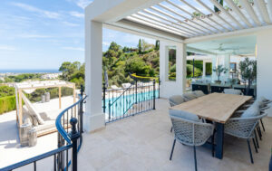 Esta magnífica villa de lujo, situada en la prestigiosa zona de El Herrojo Alto, cuenta con siete amplias habitaciones y ocho baños bellamente decorados. La propiedad se encuentra en una gran parcela, ofreciendo impresionantes vistas panorámicas tanto del mar como de la icónica montaña La Concha. Después de la renovación, la villa ha conservado su encantador estilo arquitectónico español tradicional mientras se fusiona perfectamente con acabados modernos y lujosos.