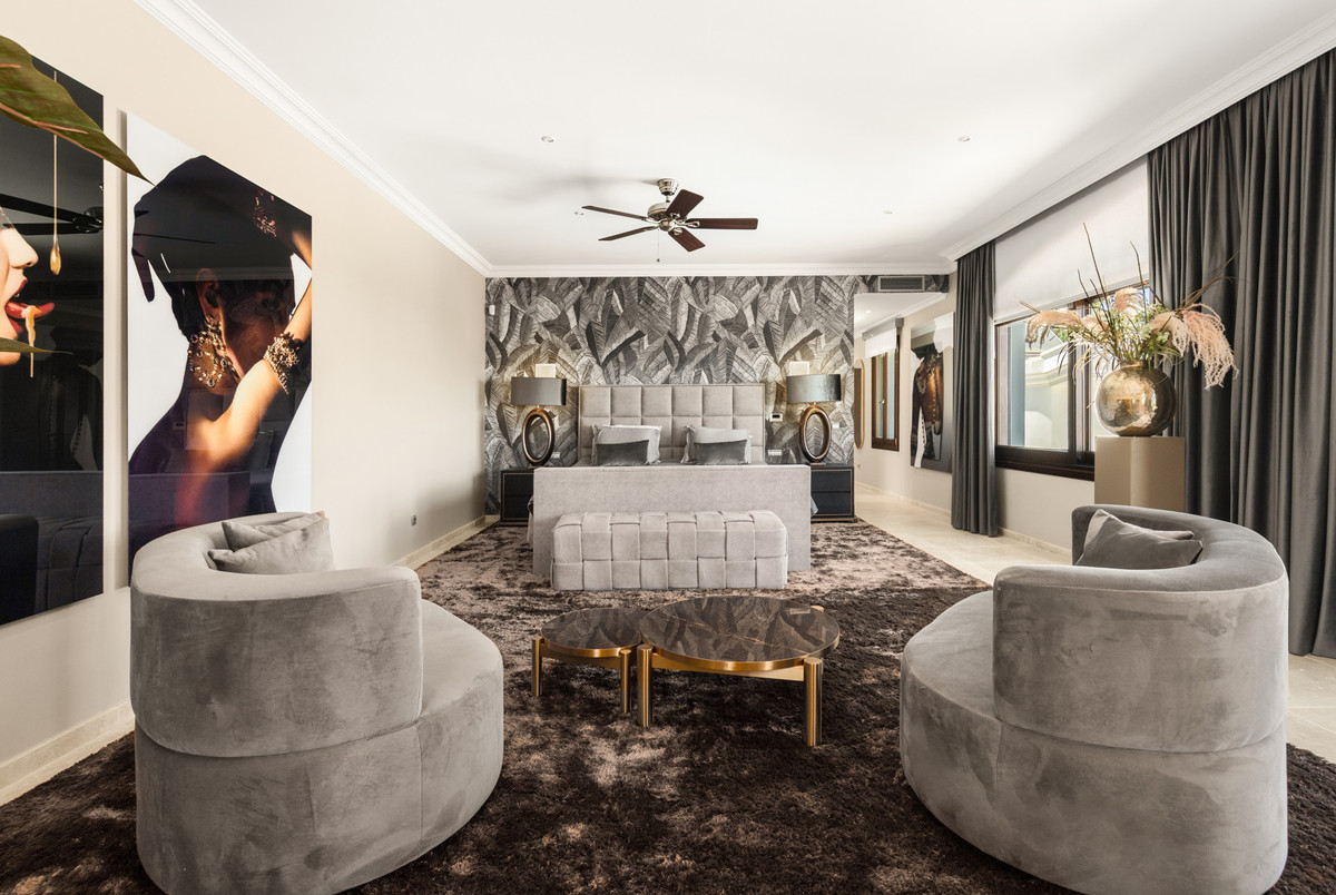 Esta magnífica villa de lujo, situada en la prestigiosa zona de El Herrojo Alto, cuenta con siete amplias habitaciones y ocho baños bellamente decorados. La propiedad se encuentra en una gran parcela, ofreciendo impresionantes vistas panorámicas tanto del mar como de la icónica montaña La Concha. Después de la renovación, la villa ha conservado su encantador estilo arquitectónico español tradicional mientras se fusiona perfectamente con acabados modernos y lujosos.