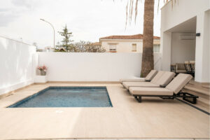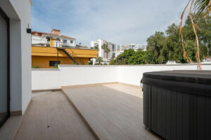 Espectacular terraza que rodea toda la casa, con zona chill-out y jacuzzi privado