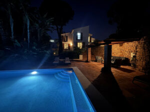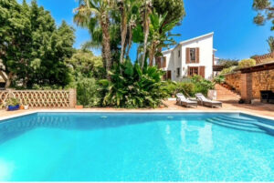 Los jardines de la villa ofrecen un entorno excepcional para la vida al aire libre, con una gran piscina, zonas lounge sombreadas, árboles consolidados y áreas ajardinadas. Desde la terraza principal, las encantadoras vistas al mar potencian la tranquilidad del entorno.