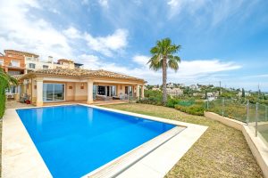 Descubra el epítome de la vida de lujo en Elviria, Marbella Este, con esta cautivadora villa orientada al sur con inigualables vistas panorámicas al mar Mediterráneo.