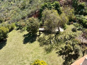• Jardín maduro y muy bien cuidado, con abundante vegetación y un árbol de aguacate, limoneros y naranjas.