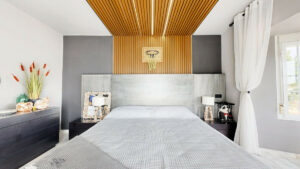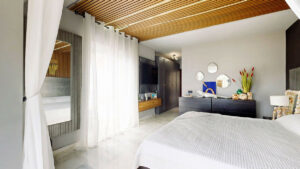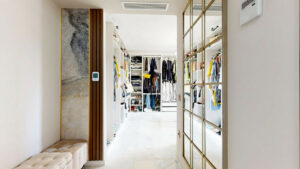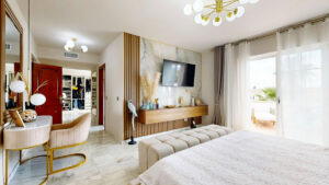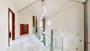 En la planta superior, la exclusiva suite principal destaca por su baño en suite, su espectacular vestidor y su terraza privada orientada al sureste, desde la que se disfrutan agradables vistas y una luminosidad excepcional. En este nivel se encuentra además otra habitación con acceso directo a la terraza.