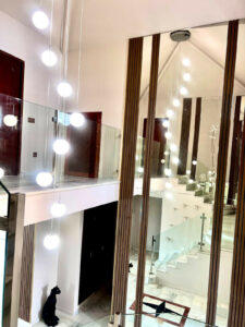 La planta inferior incluye tres dormitorios adicionales en suite, una sala de cine con opción de instalar una segunda cocina, un gimnasio, un baño de invitados extra y un amplio trastero.