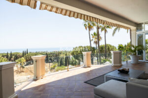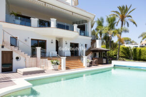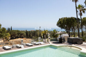 Construida originalmente en 1994, la villa fue sometida a una elegante renovación en 2018 por sus actuales propietarios, combinando perfectamente su encanto tradicional con una sofisticación contemporánea. Al entrar, te recibe de inmediato una vista espectacular del mar que se aprecia desde cada rincón de la casa, creando una sensación de continuidad y armonía en toda la propiedad.