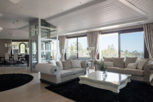 Ubicada en una amplia parcela de 3.920 metros cuadrados, esta villa cuenta con una superficie construida total de 842 metros cuadrados, distribuidos en cuatro plantas con ascensor, situada en una de las urbanizaciones más exclusivas de Marbella. Rodeada por la exuberante naturaleza de Las Chapas y propiedades de alto nivel, la arquitectura clásica mediterránea de la villa se enriquece con elementos modernos y lujosos, ofreciendo vistas impresionantes del mar Mediterráneo.