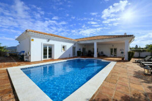Esta impresionante villa en La Cala Golf ofrece vistas panorámicas al mar y a la montaña. La casa principal, de una sola planta, cuenta con: cochera doble, 4 dormitorios en suite, aseo de invitados, una amplia cocina con isla central, lavadero independiente y dos salas de estar independientes, ambas con acceso a la gran piscina y terraza. En la planta baja se encuentra un apartamento independiente de 3 dormitorios y 2 baños con salón, cocina, una gran terraza y acceso a una segunda piscina y terraza, además de una segunda entrada para vehículos y garaje doble. Ideal para inversores, la casa cuenta con certificado de ocupación y está lista para entrar a vivir o alquilar de inmediato. ¡Una propiedad realmente espectacular!