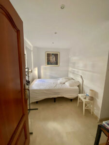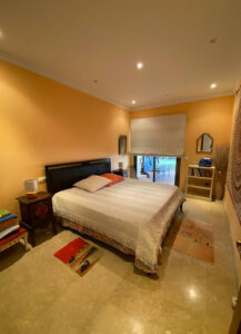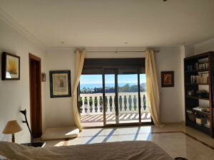 En la planta superior hay dos amplios dormitorios en suite, cada uno con su propio baño y balcón privado, desde donde se pueden admirar las vistas al Mediterráneo y al skyline de Marbella.