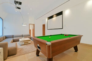 Algunas de las habitaciones tienen acceso directo a la terraza y al área de la piscina. En esta planta también encontrará la sala de cine/juegos con mesa de billar y gimnasio exterior.