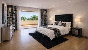 La villa cuenta actualmente con 7 dormitorios y 8 baños, incluyendo una espaciosa suite principal con vestidor, un gran baño de mármol, terraza privada y vistas panorámicas a la sierra de La Concha y al mar. El alojamiento adicional para invitados y personal de servicio proporciona a la propiedad flexibilidad para la familia, los visitantes y el personal de servicio.