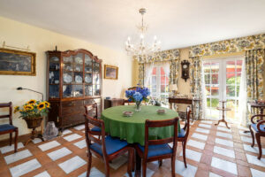 Planta principal: gran salón con ventanales al jardín, comedor, cocina independiente con acceso de servicio, despacho, dormitorio principal en suite con vestidor, tres dormitorios adicionales, zonas auxiliares, lavandería independiente y un patio interior con vegetación que aporta luz y frescor natural.
